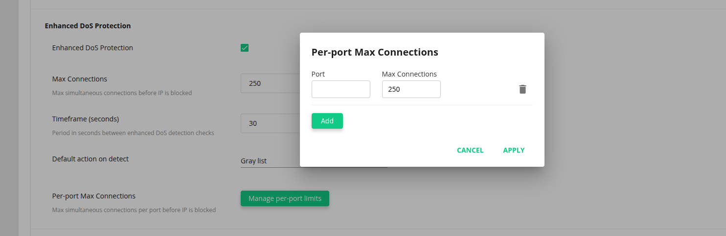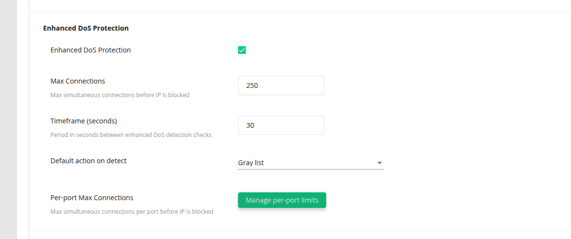 Firewall – a dashboard of Black List, White List and Gray List, and Blocked Ports with the ability to manage them.